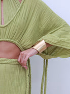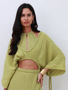 The skirt is designed with a braided waistband, a front slit for ease of movement, and a side-seam zipper for a sleek finish. Together, the set creates a fluid, elongated silhouette that feels as elegant as it is versatile.