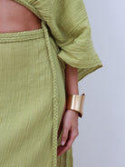 Crafted from wrinkle gauze, the fabric is lightweight, breathable, and textured, adding a subtle dimension to the look. Designed in a Small (S) fit, the skirt measures 46” in length, making it a standout piece for day-to-evening sophistication.
