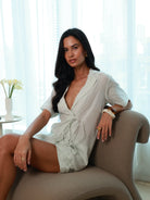 Crafted in 100% linen as the main fabric, the pieces are lightweight and airy. The shorts are fully lined with soft cotton mulmul for comfort and coverage, while the shirt remains unlined for an effortlessly fluid drape. Designed in a Small (S) fit, the shirt measures 28” and the shorts measure 16”, making the set versatile for both casual outings and resort moments.