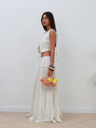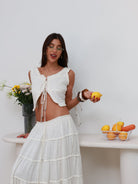 Crafted from plain gauze cotton, the fabric feels light, breathable, and airy against the skin—ideal for warm days or layered looks. Whether styled for a casual outing or dressed up for a resort evening, this skirt moves with ease and grace.