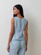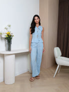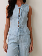 Relaxed tailoring meets effortless sophistication in this versatile two-piece set. The sleeveless tank top is designed with a clean silhouette and a tie-back closure, offering both function and a subtle touch of detail. Paired with loose-fitted pants featuring a hook-and-eye with zipper closure, the set strikes the perfect balance between ease and structure.