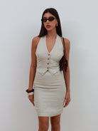 Linen Halter Vest & Skirt Set