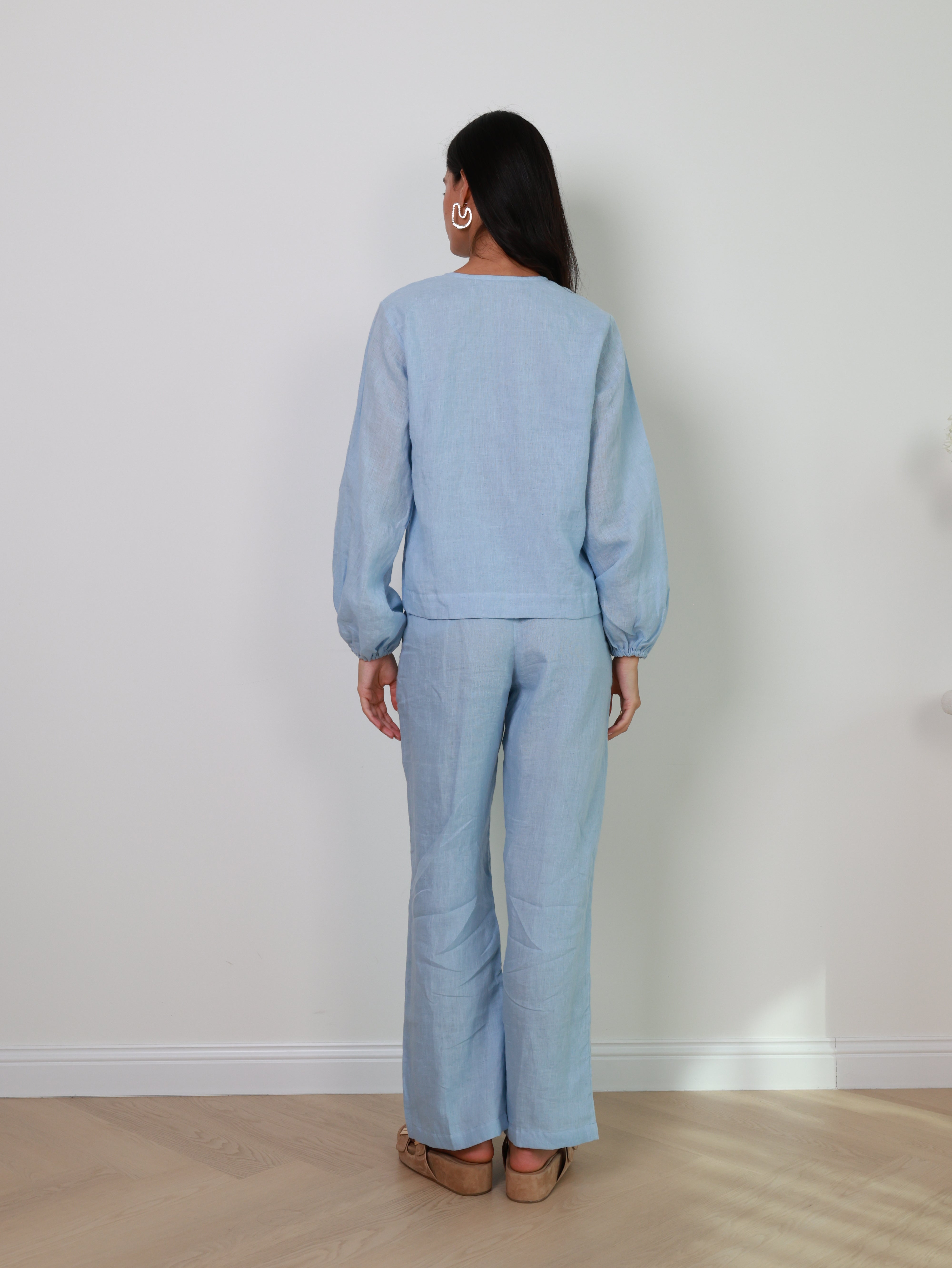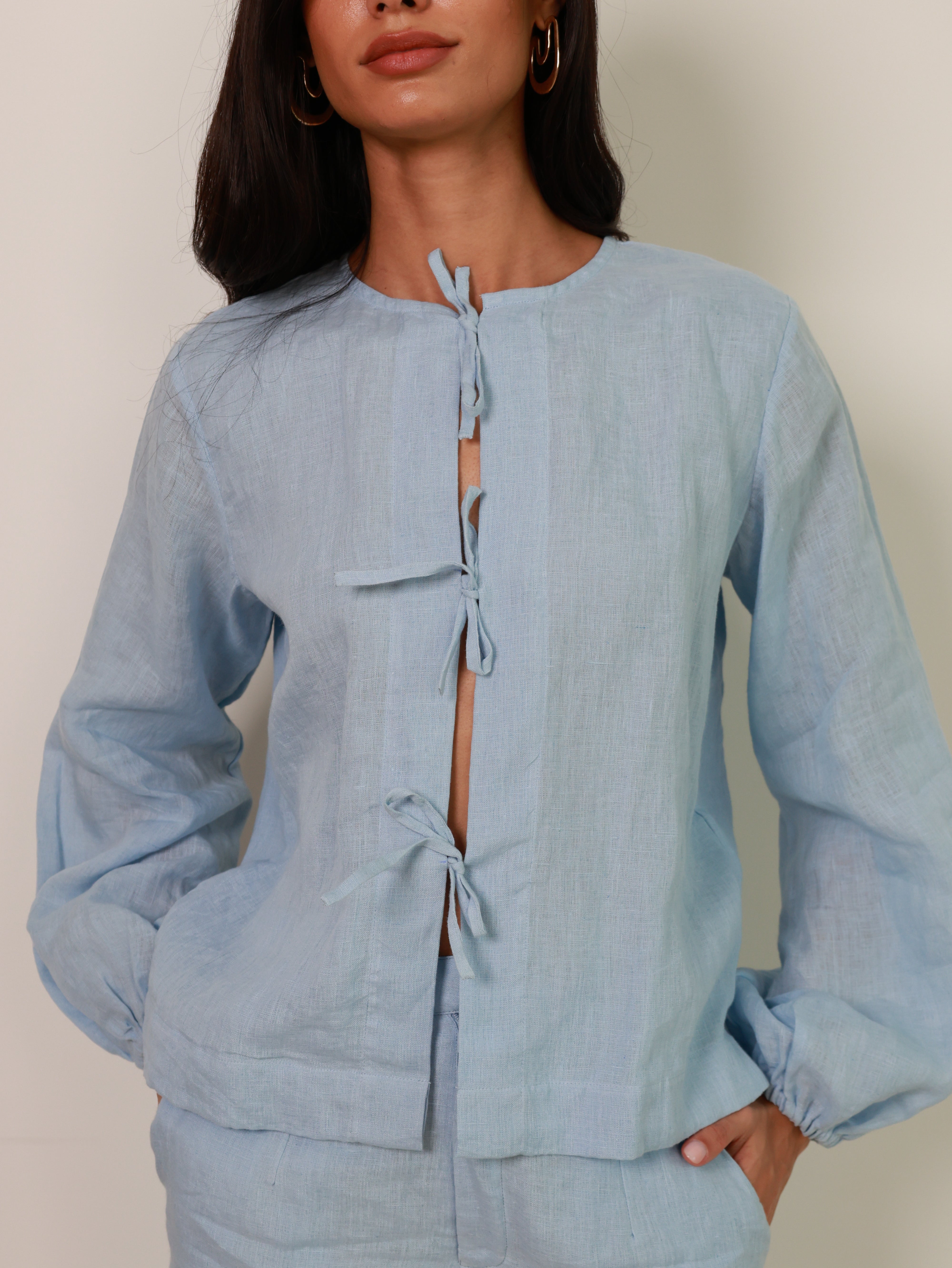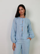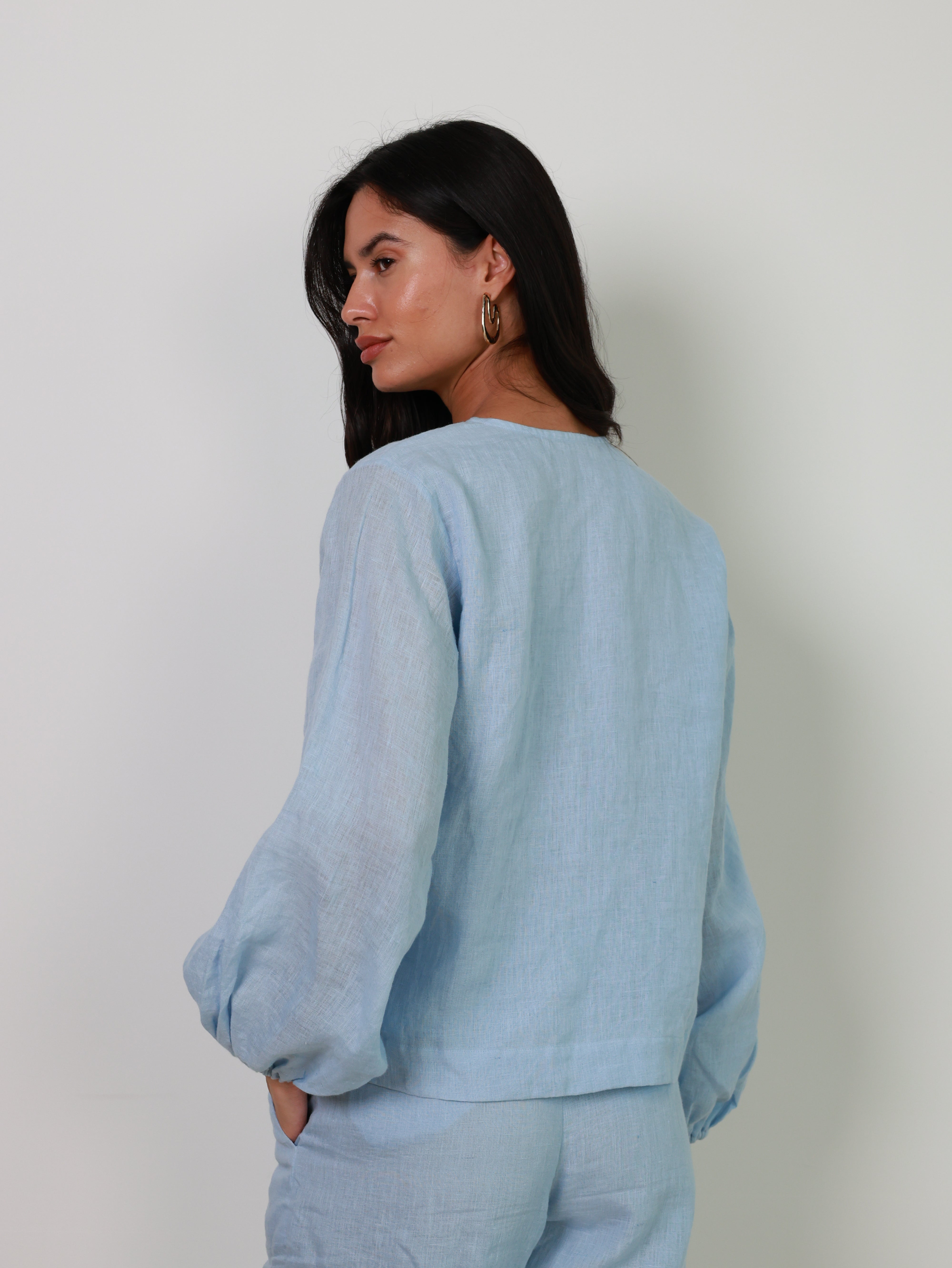 Crafted from 100% linen as the main fabric and fully lined with soft cotton mulmul, the top feels breathable, lightweight, and gentle on the skin—perfect for warm-weather sophistication. Cut in a Small (S) fit, the 23” length gives it a flattering, versatile profile that pairs seamlessly with skirts, trousers, or denim.