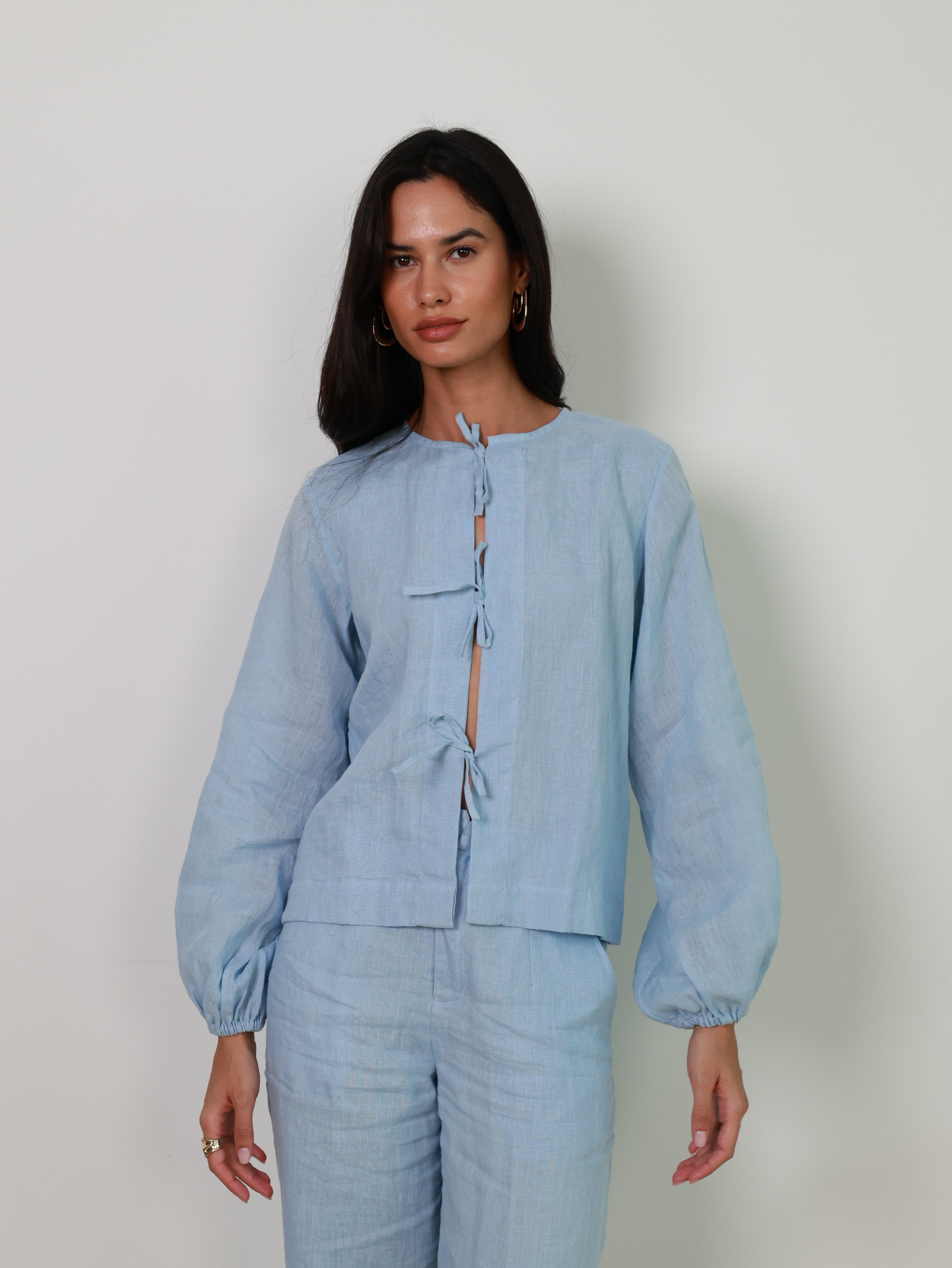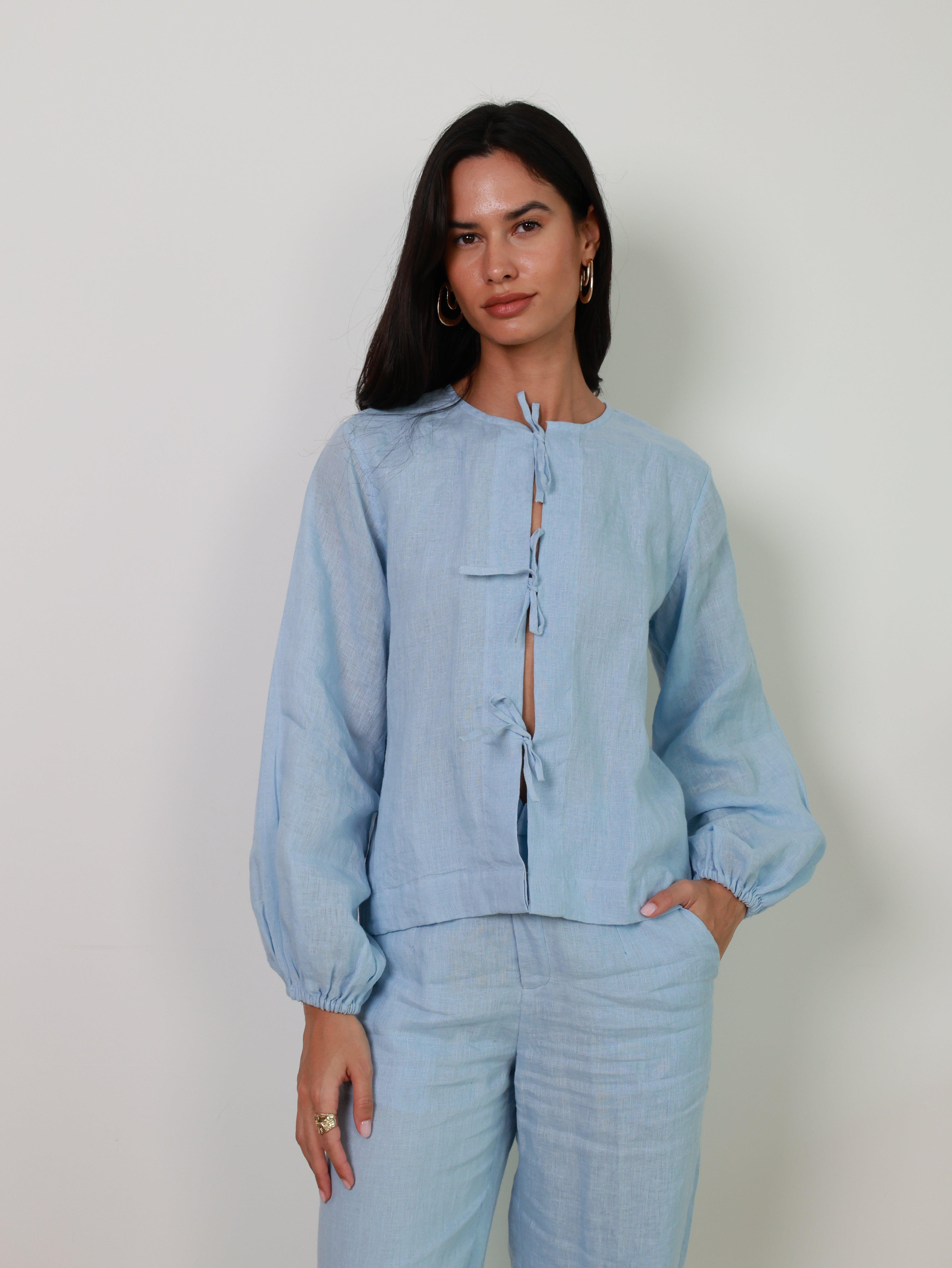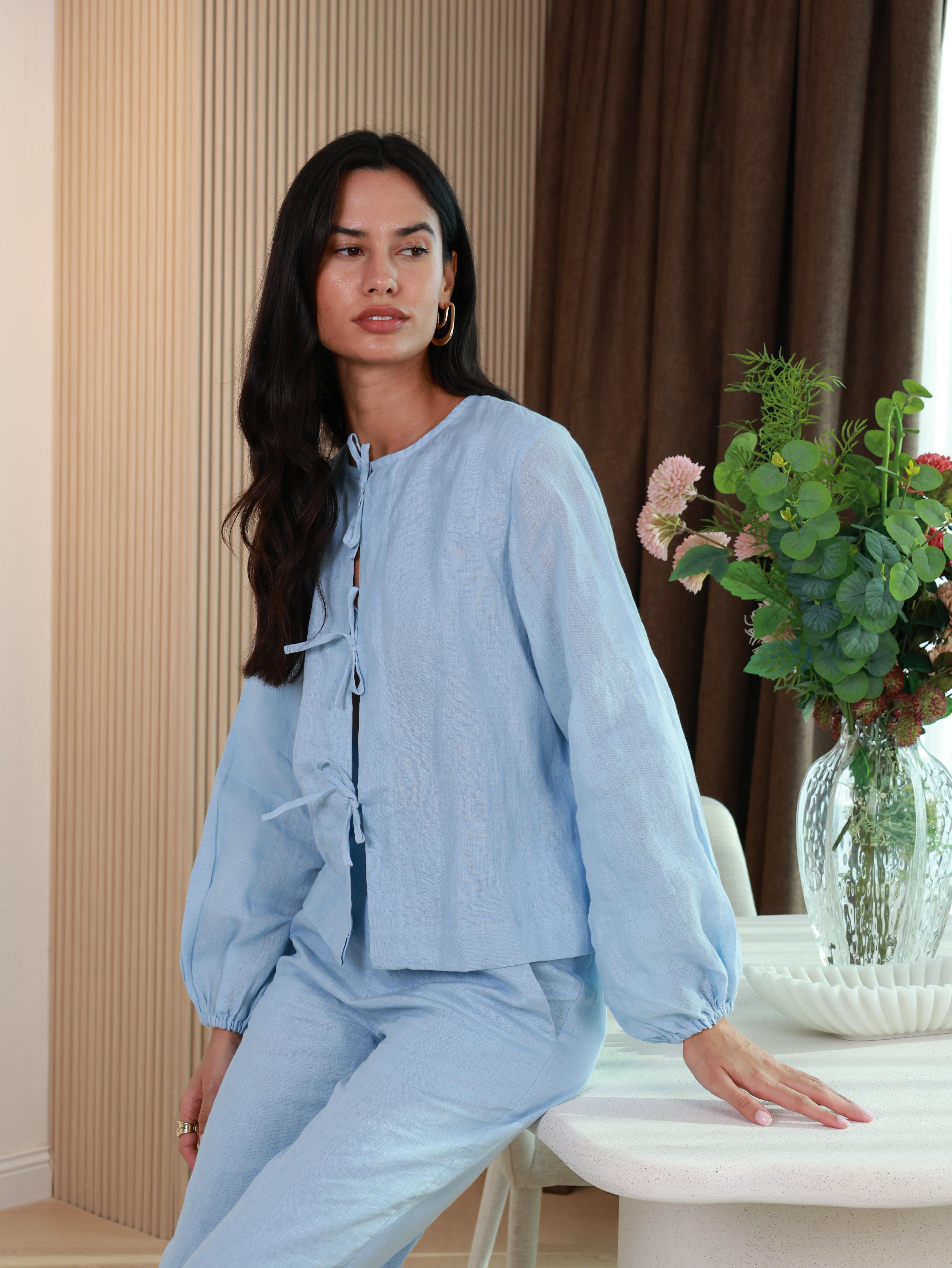Relaxed yet elevated, this loose-fitted vest top brings a modern softness to everyday dressing. Designed with adjustable front straps for closure, it offers both versatility and comfort, while the voluminous balloon sleeves with elastic at the wrist create a subtle statement that balances ease with elegance.