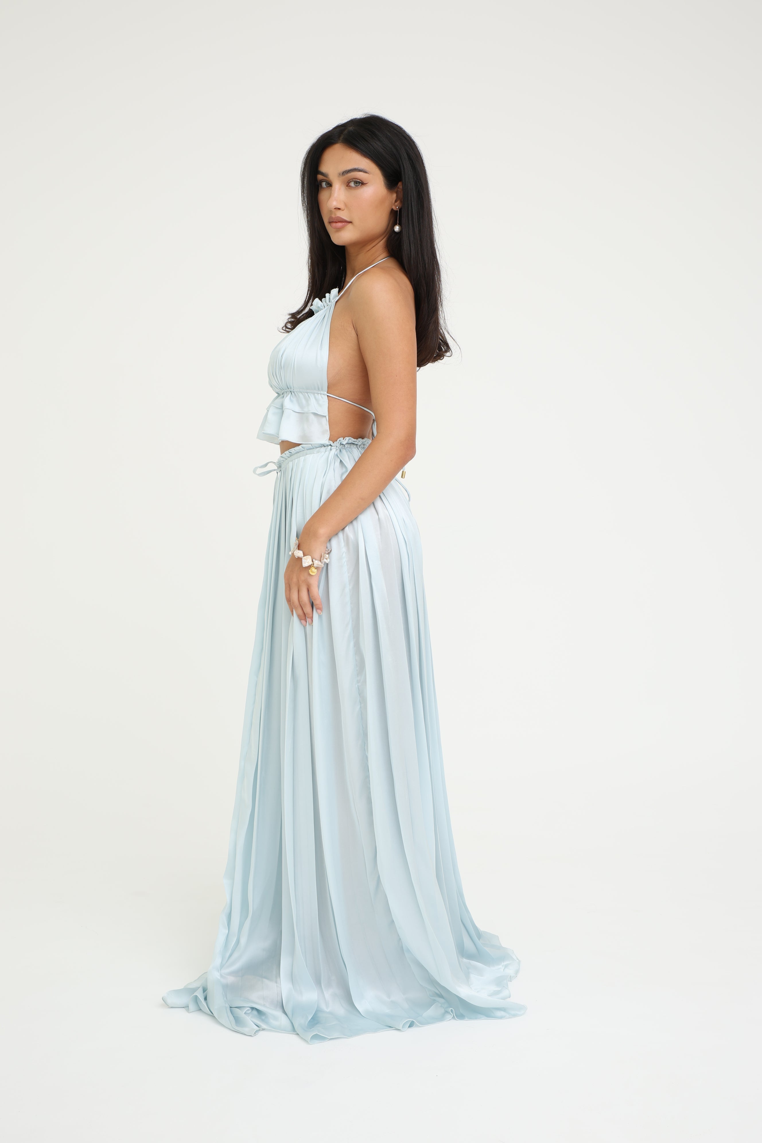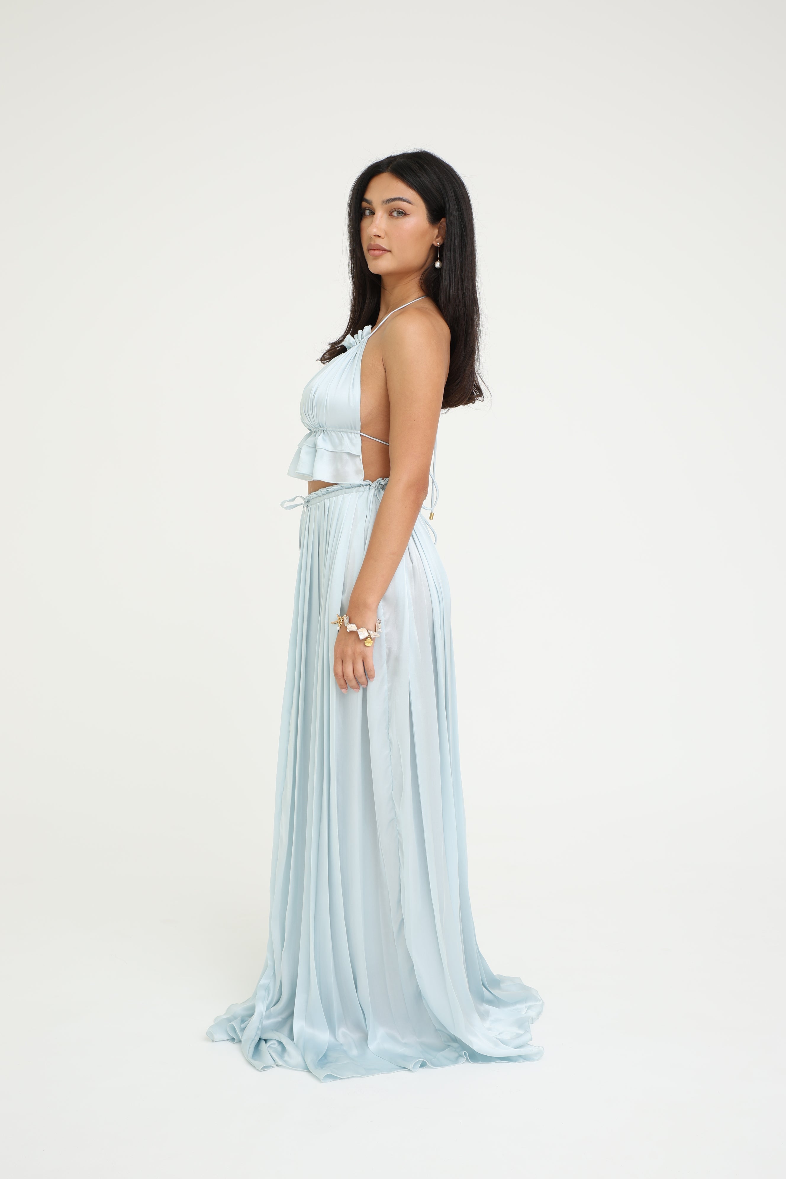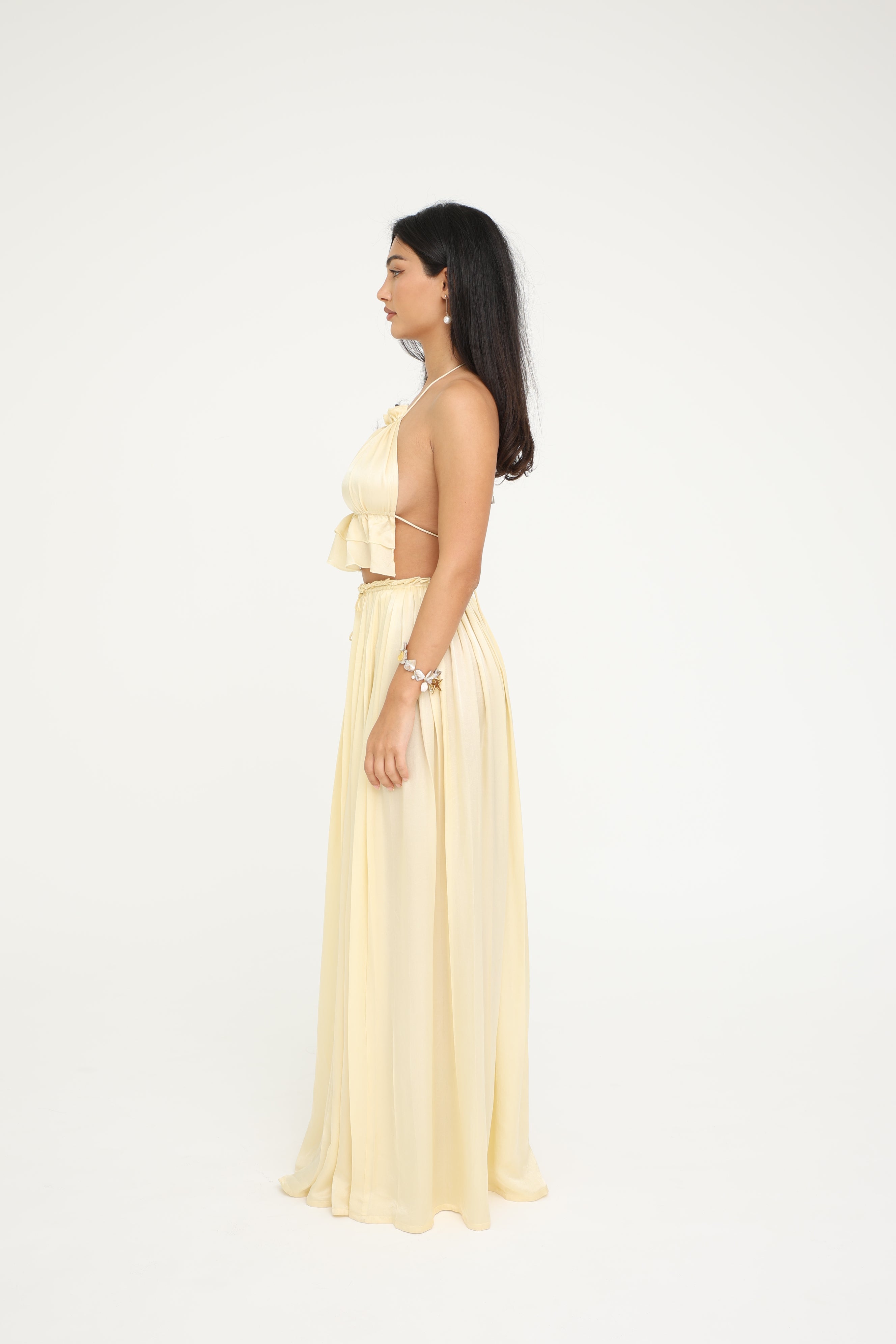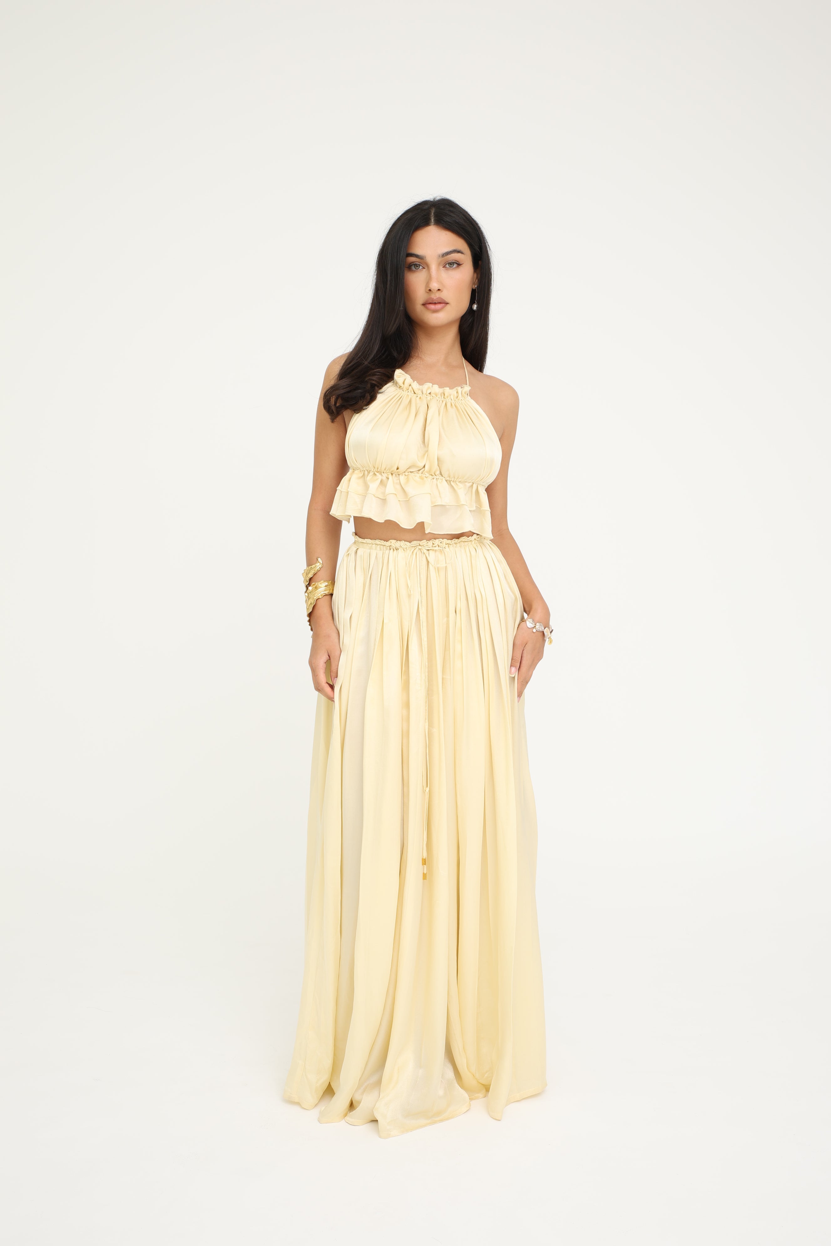 Low-waist, maxi-length skirt for a flowing, graceful silhouette