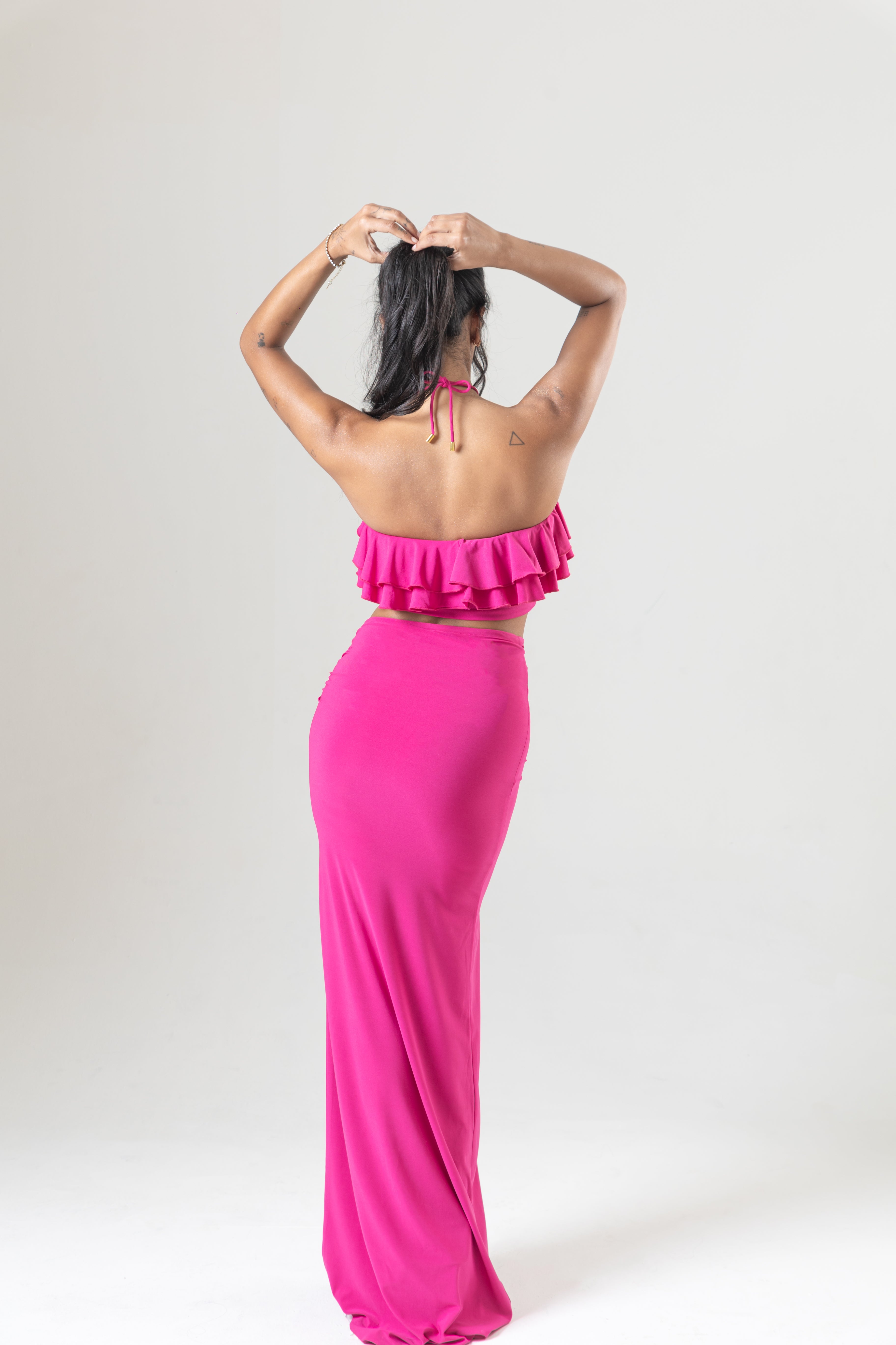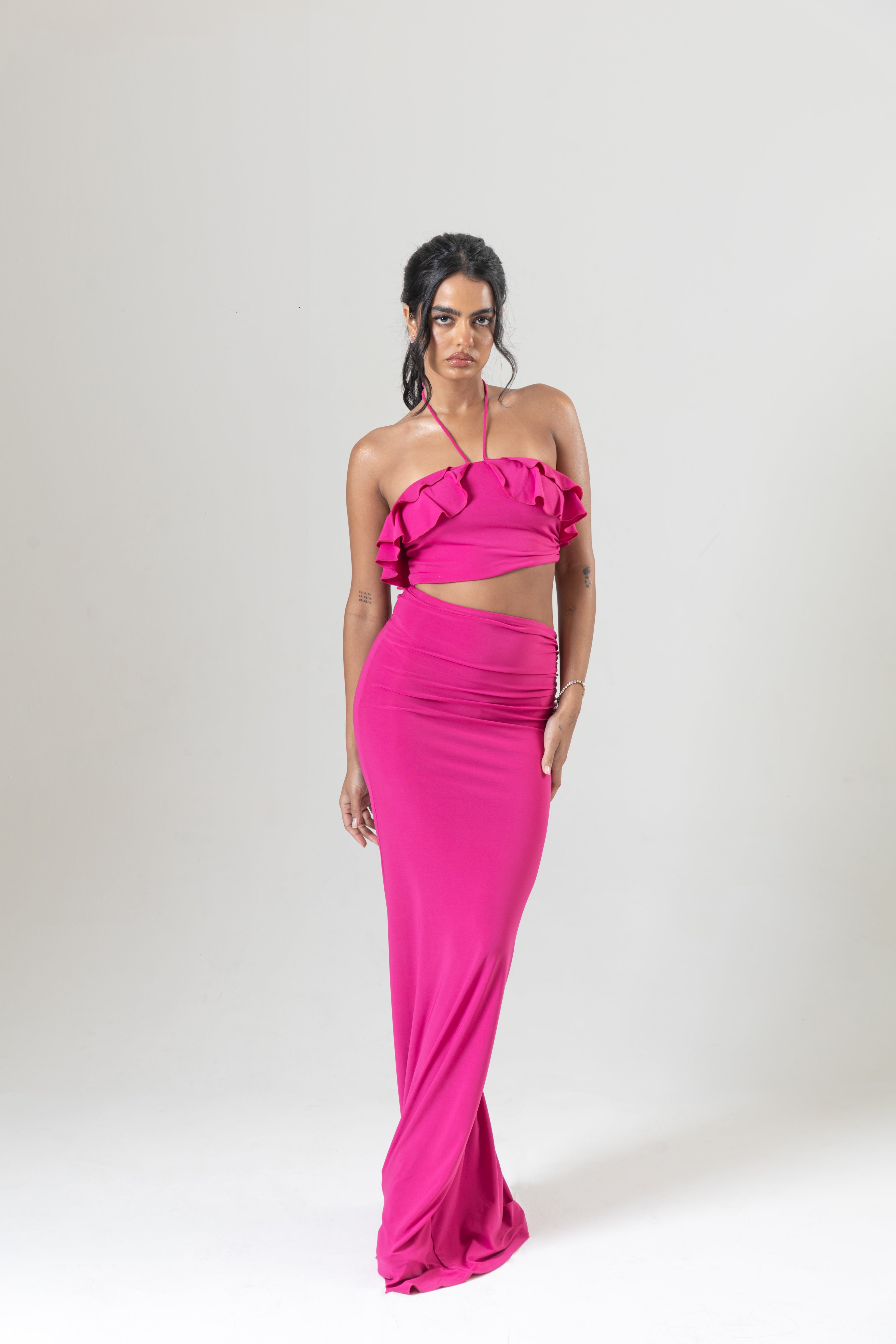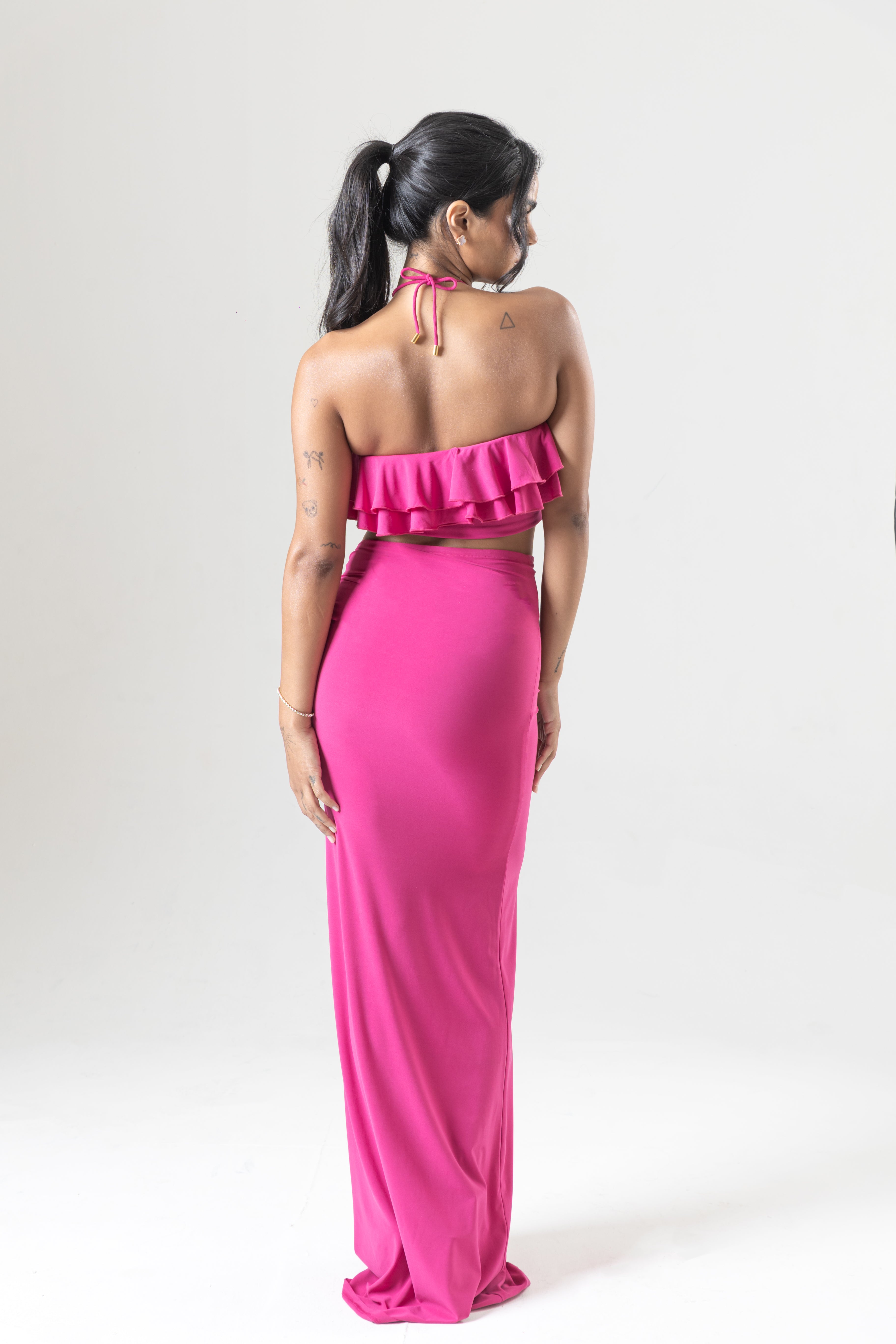 - Long, floor-length maxi skirt that creates an elegant silhouette.